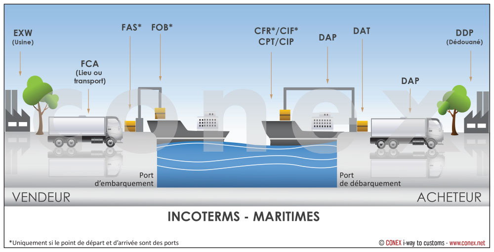 - Maritime Incoterms – sale on departure: FAS/FOB/CFR/CIF